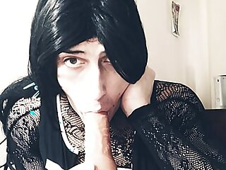 "Deepthroating of big dildo ftm trans facefuck"