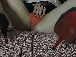 "A beautiful girl in high heels and pantyhose, demonstrates her beautiful legs."