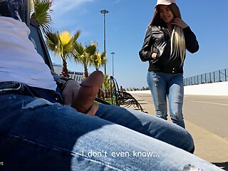 "Babe Was Surprised To See Guy Jerking Off Dick In The Park And Helped Him Cum"