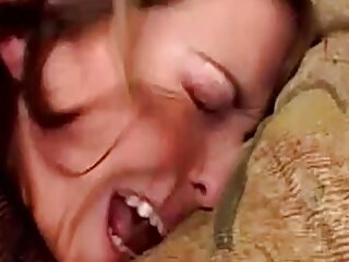 "Curly haired brunette spits into her friends mouth and eats cum after some raw anal"