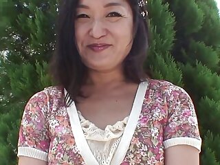 "MILF Nobuko Tachikawa grinds her hairy pussy on an Asian guys hard cock"