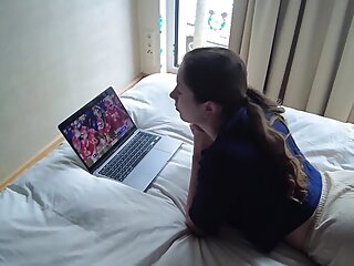 "A Cute Schoolgirl In Stockings Will Delight You With A Jerk Off With Her Legs and Her Wet Pussy"