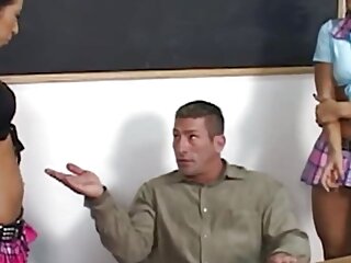 "Two Naughty Brunette Asian Girls Learn How to Share Their Teachers Cock and Cum"