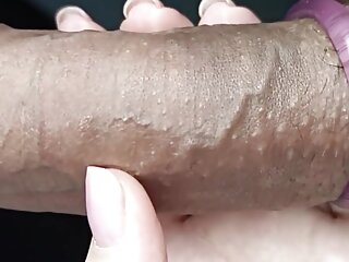 "Man cum on the feet of superb mistress in black nylon stockings"