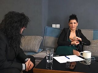 "Sexy assistant assisting a poor tiny dick during his job interview"