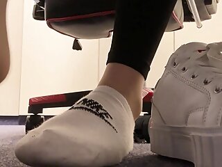 "Showing my socks and feet while working"
