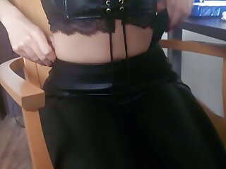 "Very horny blonde in very sexy lingerie, playing with her body"