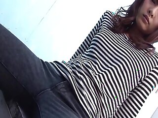 "Japanese Chick Plays with Her Hairy Pussy and Strokes a Guy with Big Cock Outdoor"