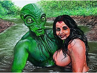 "Erotic Art Or Drawing Of Sexy Indian Desi Bhabhi in Love With an Extraterrestrial Alien"