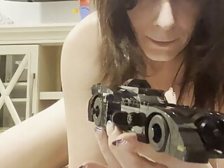 "Milf fucks huge vibrator until moaning shaking squirting orgasm"