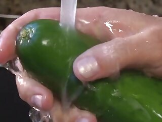 "A Desperate Housewife Uses Cucumber and Carrot as a Substitute for a Big Hard Cock"