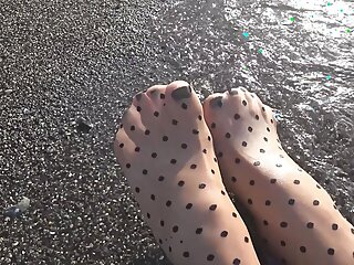 "POLKA DOTS PANTYHOSE ON THE BEACH"