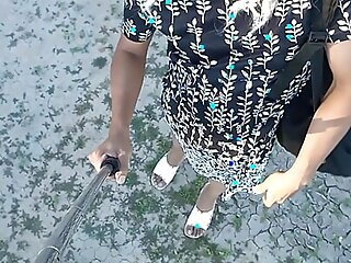 "cute slut with anal plug, stockings and sandals in public, very hot"